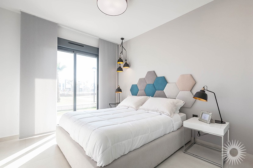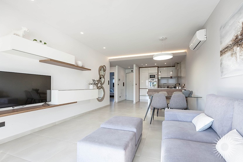Diese Apartments bestehen aus einem Salon/Esszimmer mit offener Küche, zwei Doppelschlafzimmern, eines davon en suite und einem weiteren Familienbadezimmer. Der Salon hat Terrassentüren auf eine teilweise überdachte Terrasse und eine Treppe führt von hier zu einem riesigen privaten 68 m² großen Dachsolarium.